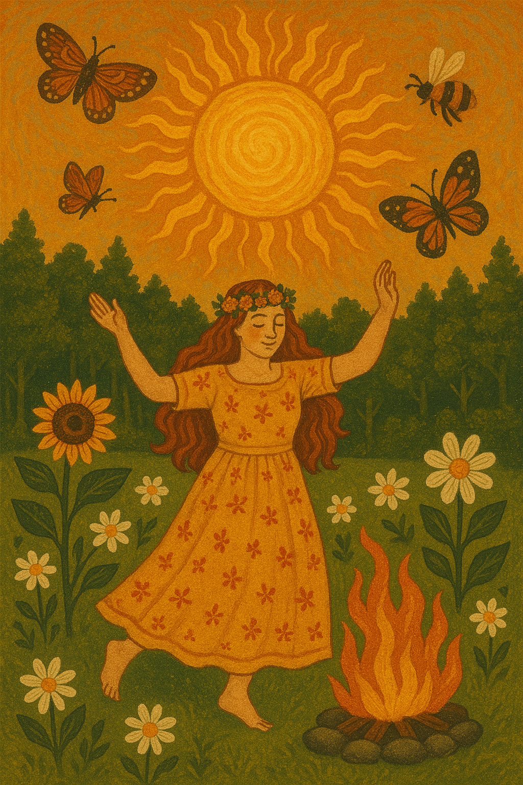 Because, after Litha, the light begins to wane. The wheel turns. The days shorten, slowly at first. So this moment — this fire-bright, blossom-heavy, bee-laced moment — is fleeting. And that’s what makes it sacred.