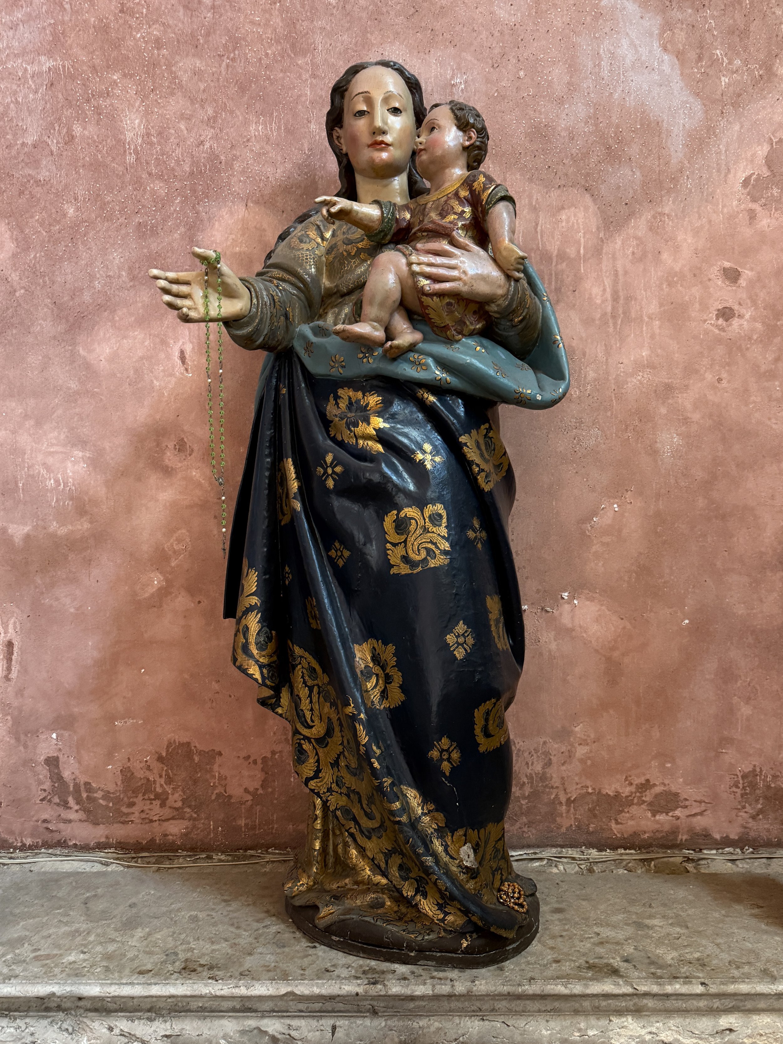 A statue of the Virgin Mary as Our Lady of the Rosary